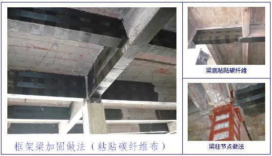 梁采用粘钢板、外粘碳纤维片材进行加固。