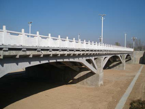 1、工程概况:此桥为三跨刚架拱桥,拱片、拱腿、斜撑为预制钢筋混凝土构件,混凝土设计强度为C30。大桥总长79.89米,总宽18.5米,其中车行道16米,两侧各1.25米人行道。